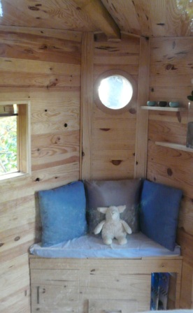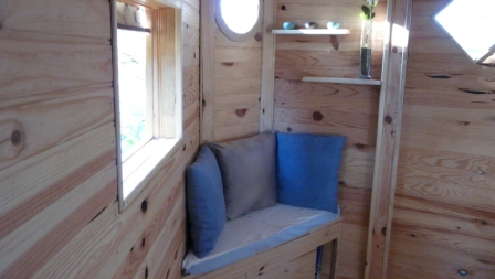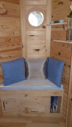 Ces cabanes semblent être bien finies. Petit endroit sympa pour passer de calmes moments. Le canapé-meuble est très fonctionnel. Ne serait-ce pas l’endroit idéal pour attirer une gonzess ?
